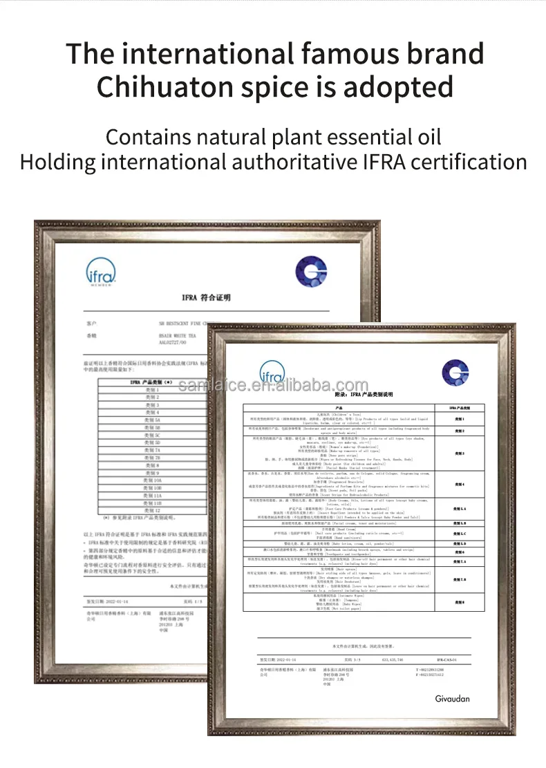 IFRA-Certified Fragrance Oils: Crafted with international Chihuaton spices and natural plant extracts, the scents range from white tea and oolong to jasmine and lavender, ensuring safety and quality.