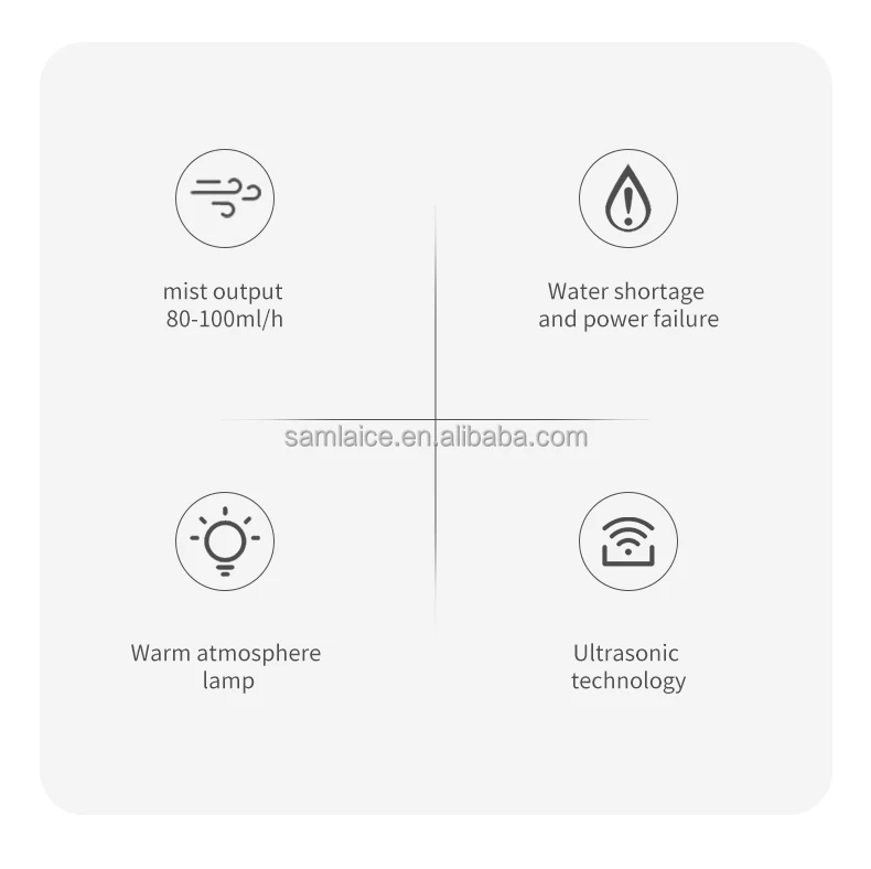 and simulated flame mood lighting to elevate your home ambiance. Powered by advanced 2.4MHz ultrasonic technology, it converts water into ultra-fine 4-micron mist particles,