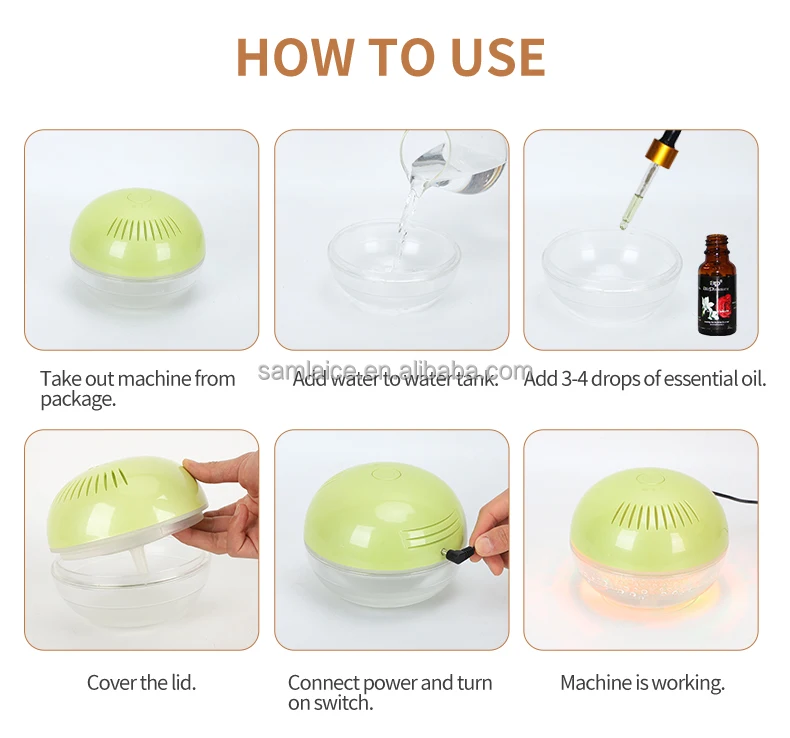 Essential oils for aroma diffusers need to be water-soluble. Regular essential oils are not water-soluble, can easily clog the atomizing chip, and therefore are not suitable for aroma diffusers.