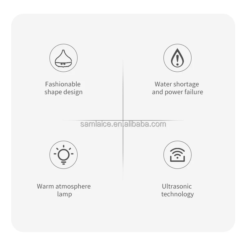 Essential oils for aroma diffusers need to be water-soluble. Regular essential oils are not water-soluble, can easily clog the atomizing chip, and therefore are not suitable for aroma diffusers.