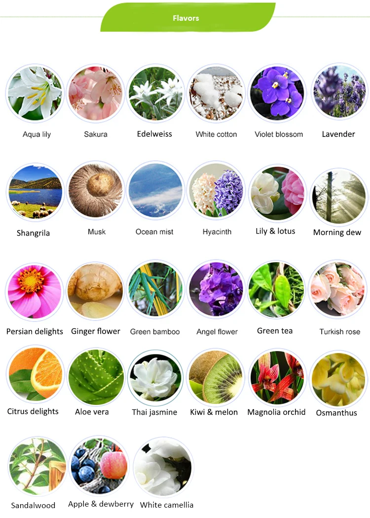 We can recommend the version with a wood grain base, a semi-transparent PC upper cover, and lights. The price is the same as the standard wood grain version. Relatively fresh and light scents include: Green Bamboo, White Cotton, Hyacinth, Sea Mist, Sunrise, Edelweiss, Shangri-La, Mongolian Orchid, Apple & Berry, Lily & Lotus, Angel Flower. Relatively strong and rich scents include: Water Lily, Jasmine, Lavender, Musk, Rose, Cherry Blossom, Violet.