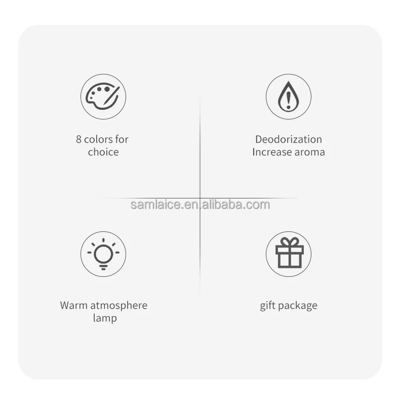 FOSHAN SAMLAICE AROMATIC CO., LTD. is an integrated enterprise engaged in the research, development, production and marketing of air purifiers, aroma diffusers, humidifiers, reed diffuser oils, essential oils for diffusers, nebulizer oils and general fragrance oils.