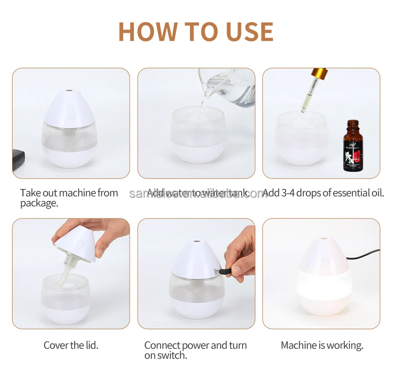 Essential oils for aroma diffusers need to be water-soluble. Regular essential oils are not water-soluble, can easily clog the atomizing chip, and therefore are not suitable for aroma diffusers.