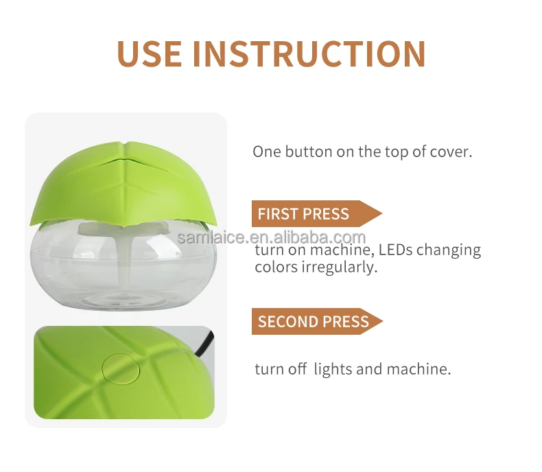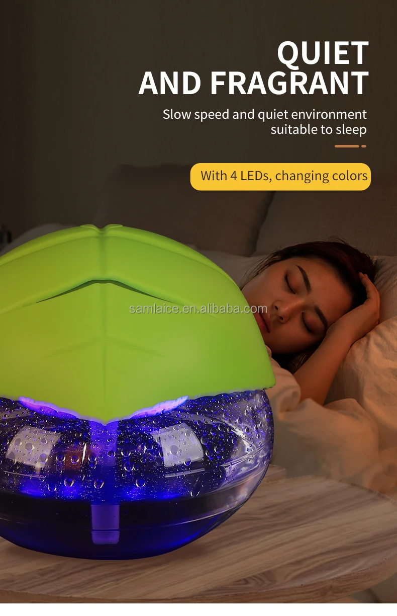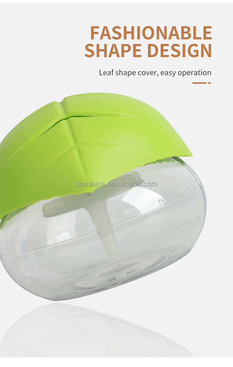 Designed with a leaf cover for dust prevention and aesthetic appeal, it is compatible with water‑based essential oils for aroma diffusers and air purifiers.