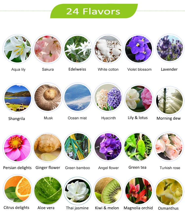 We can recommend the version with a wood grain base, a semi-transparent PC upper cover, and lights. The price is the same as the standard wood grain version. Relatively fresh and light scents include: Green Bamboo, White Cotton, Hyacinth, Sea Mist, Sunrise, Edelweiss, Shangri-La, Mongolian Orchid, Apple & Berry, Lily & Lotus, Angel Flower. Relatively strong and rich scents include: Water Lily, Jasmine, Lavender, Musk, Rose, Cherry Blossom, Violet.